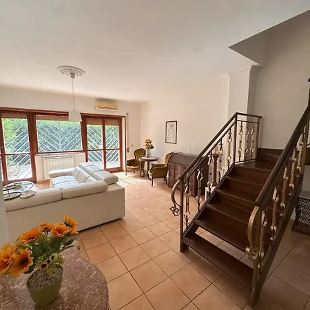 Tijdens een verblijf in Ampio Appartamento Su Due Piani Immerso Nel Verde Rome van 120 m² kunnen gasten zich ontspannen op een terras op 7 km van de Abdij Tre Fontane.